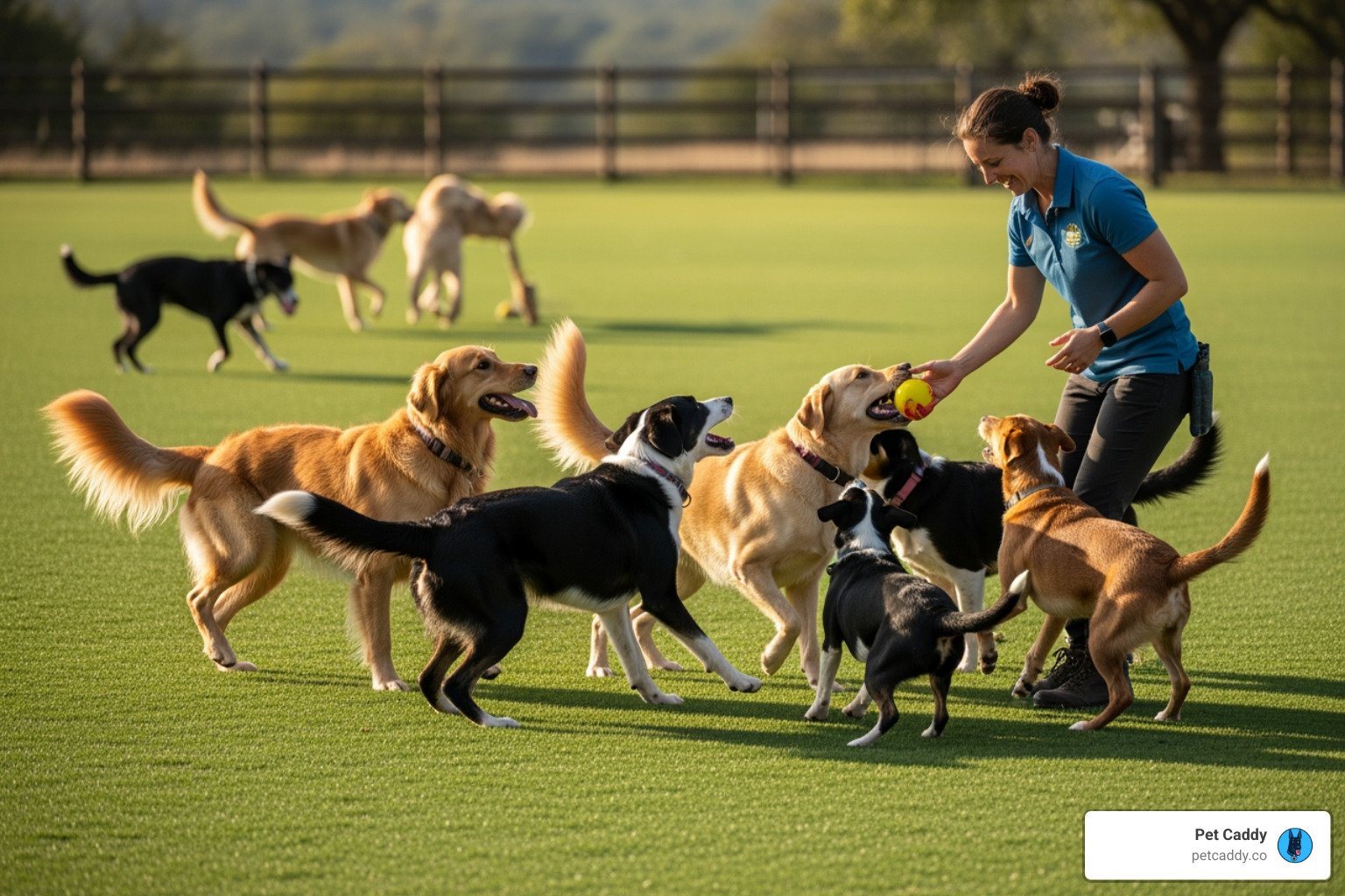 The Pet Caddy difference isn’t just about professional training, though that’s certainly part of it. It’s about the whole experience—local, personal, and truly Like Home. While your dog learns essential skills, they’re also enjoying a genuine Ranch Adventure on our five-acre property, with Wide Open Spaces to run, explore, and play. They’re receiving Hands-On Care in a Calm Boutique Space where Small Groups, Big Care means they’re never just another face in a crowded facility.
